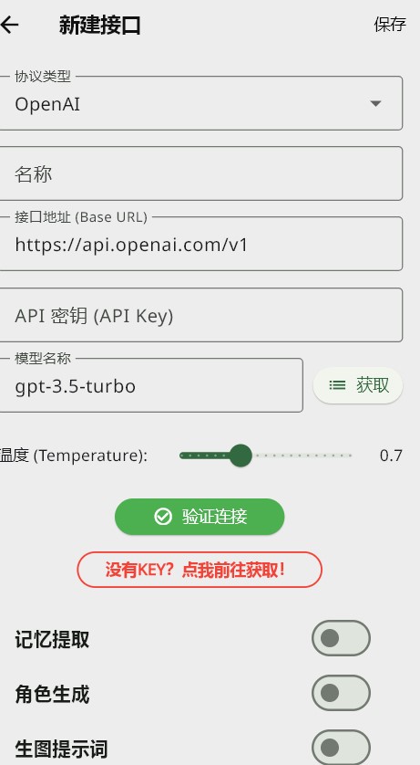 如果想要更方便,可以选择只填写 接口地址 和 apikey,然后点击获取模型。它就会把网站的模型全都拉出来。